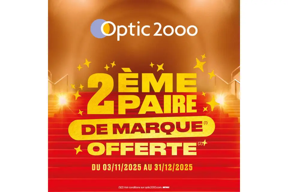 Profitez d’une 2ᵉ paire de marque offerte chez Optic 2000 Padieu du 3 novembre au 31 décembre 2025.