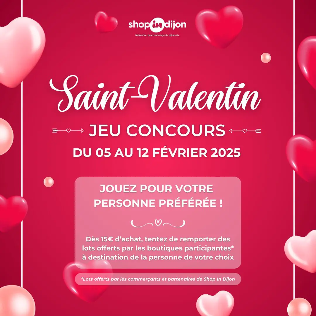 Tirage au sort prévu le jeudi 13 février 2025. Les gagnants seront contactés par Shop In Dijon.