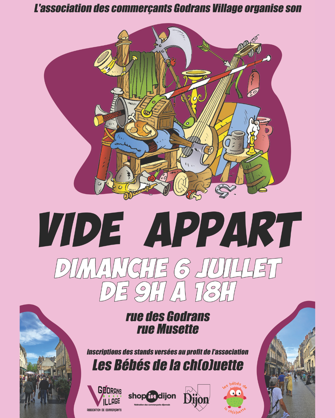 Envie de faire du tri chez vous, de donner une seconde vie à vos objets, ou tout simplement de passer un bon moment en plein cœur de Dijon ? Ne manquez pas la nouvelle édition du Vide Appart’, un vide-grenier pas comme les autres organisé en plein cœur du centre-ville de Dijon : rue des Godrans !