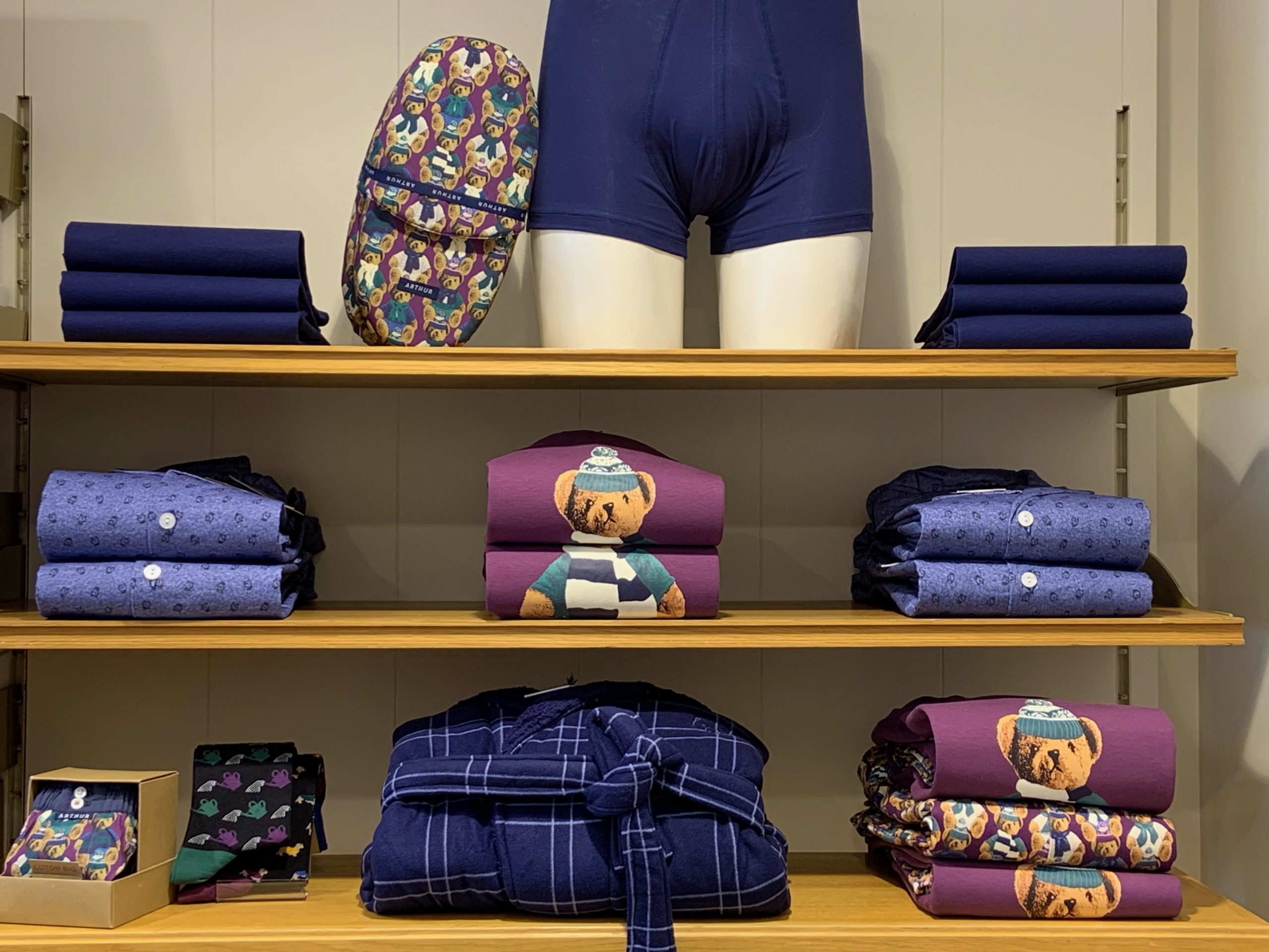 Depuis 1983, Arthur conserve la même ambition : mêler des produits haut de gamme de création française, fruits d’une innovation constante, à une touche d’impertinence décalée et discrète : Caleçons, Boxers, Pyjamas, Chaussettes, Chaussons pour hommes, femmes et enfants.