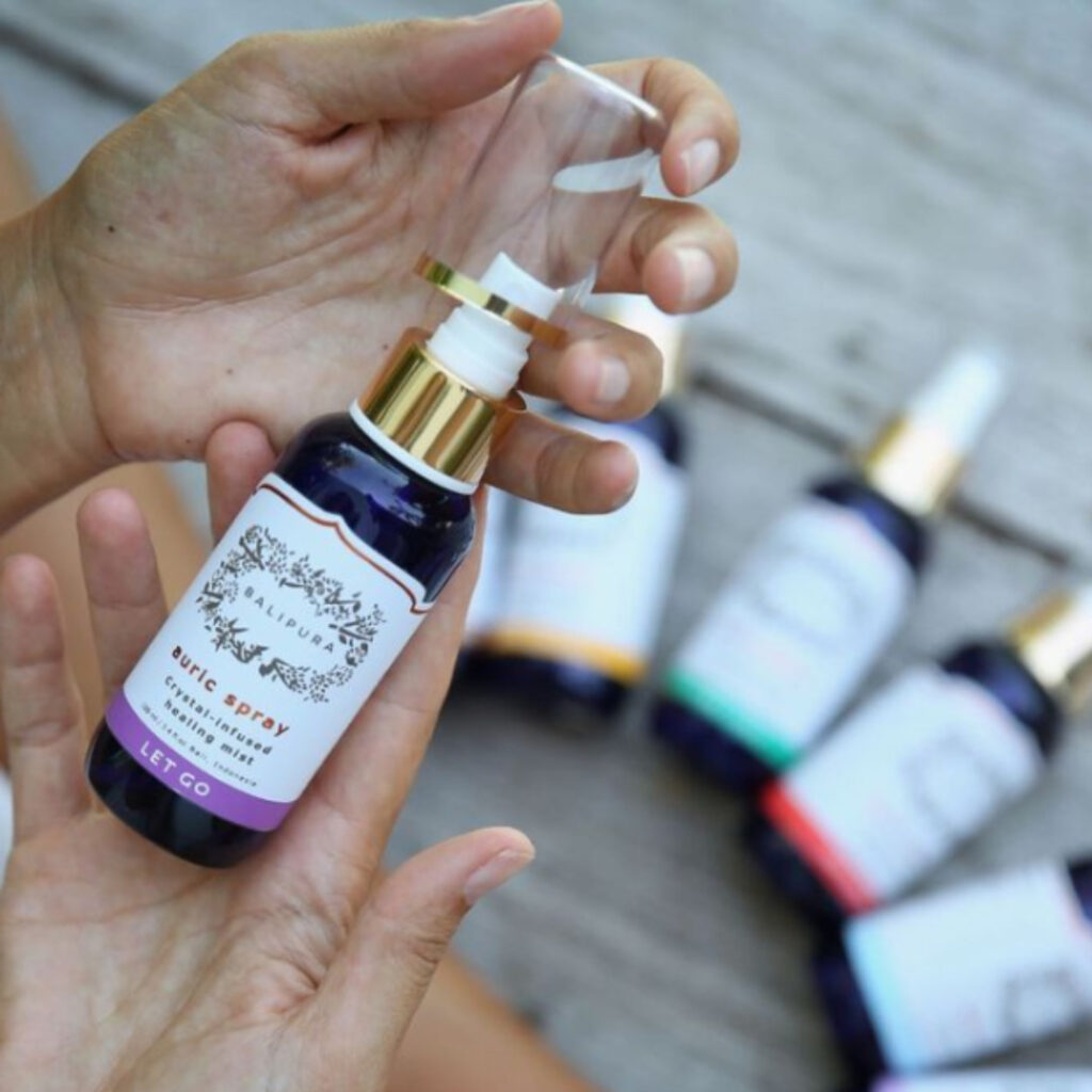 Bien-êtreCes brumes de guérison sont fabriquées à Bali. Elles sont naturelles et réalisées en conscience avec un processus sonore vibratoire, et sont bénies par un prêtre balinais.