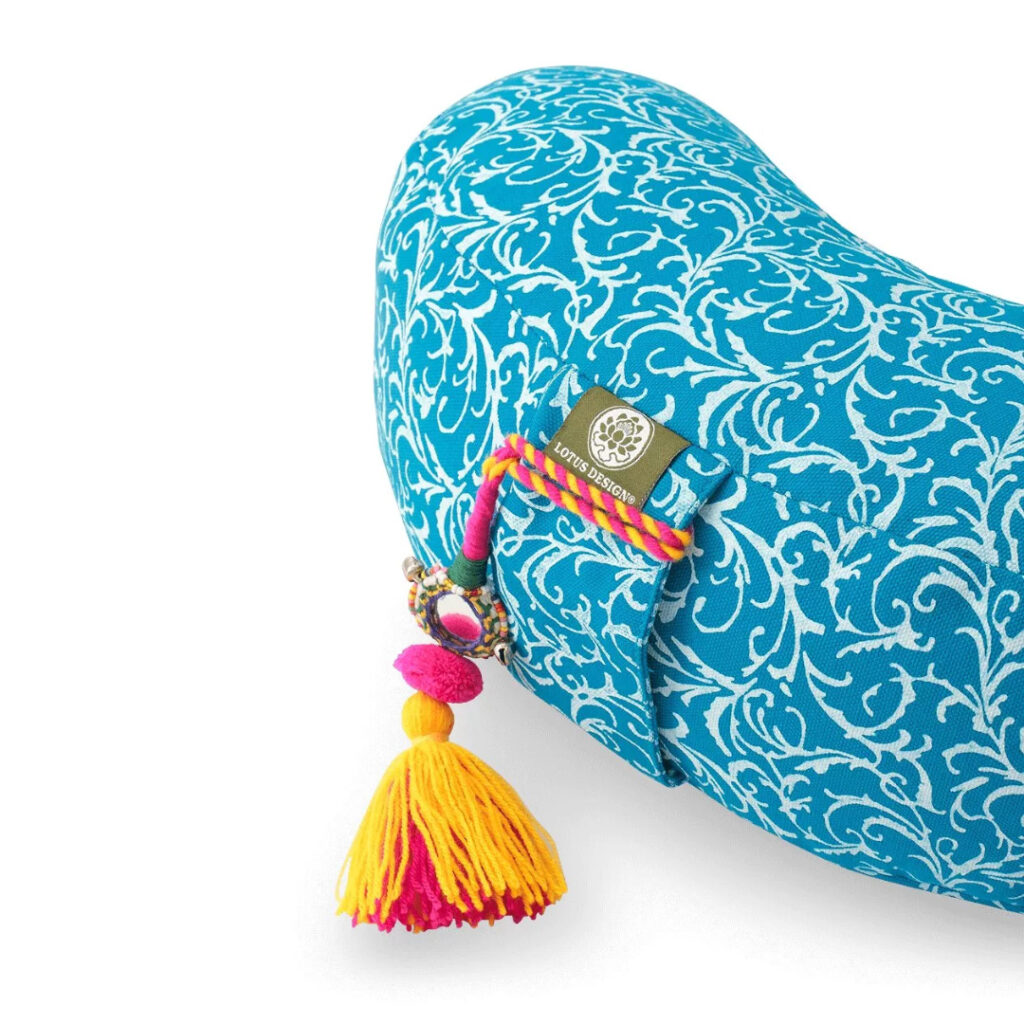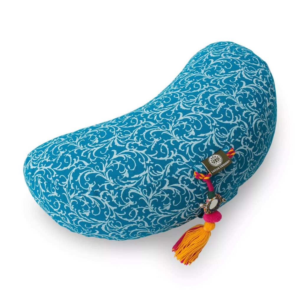 Bien-êtreCoussin de méditation imprimé en forme de croissant ergonomique. Housse amovible de haute qualité avec fermeture éclair. Coussin intérieur zippé et garni d'écales de sarrasin bio.