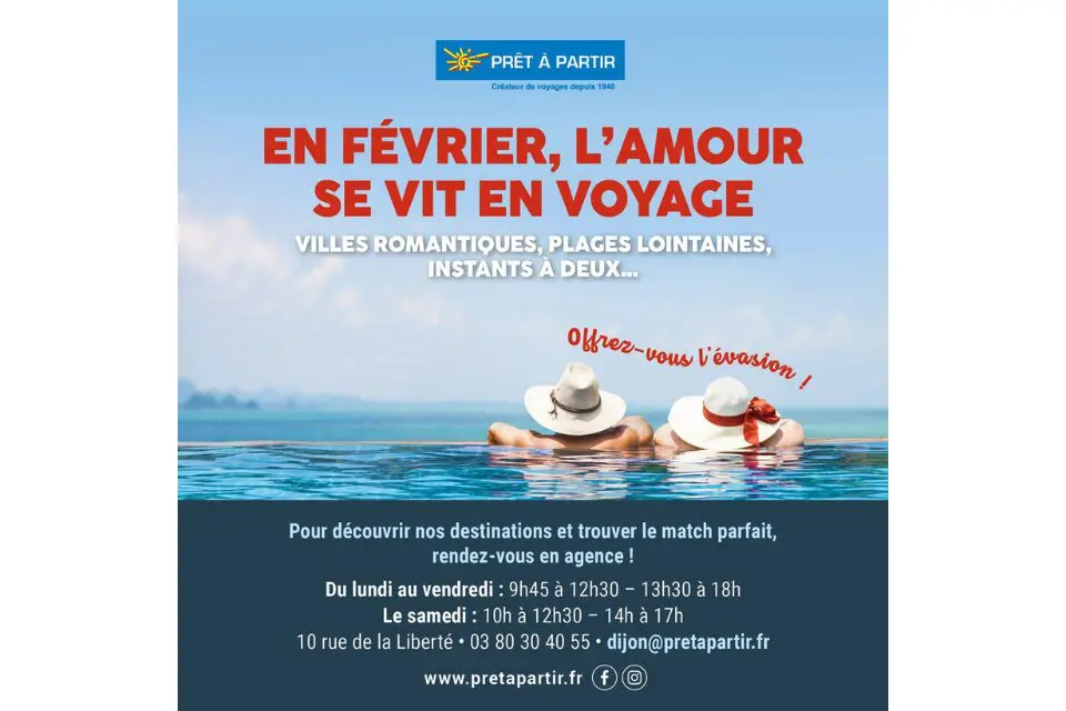Que vous rêviez d’un week-end en Europe ou d’un séjour au soleil, votre agence Prêt à Partir Dijon sélectionne pour vous des destinations idéales à vivre à deux.